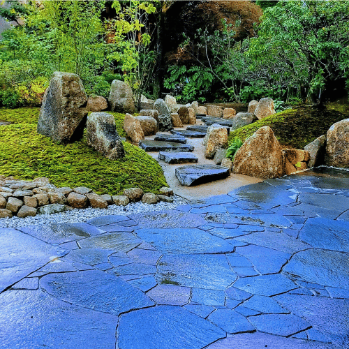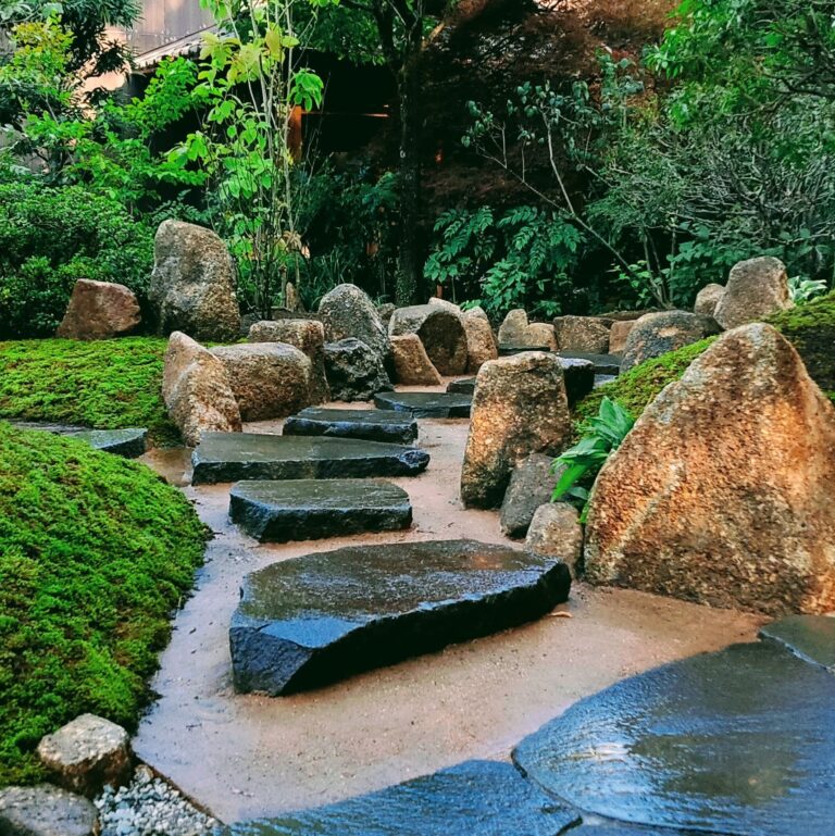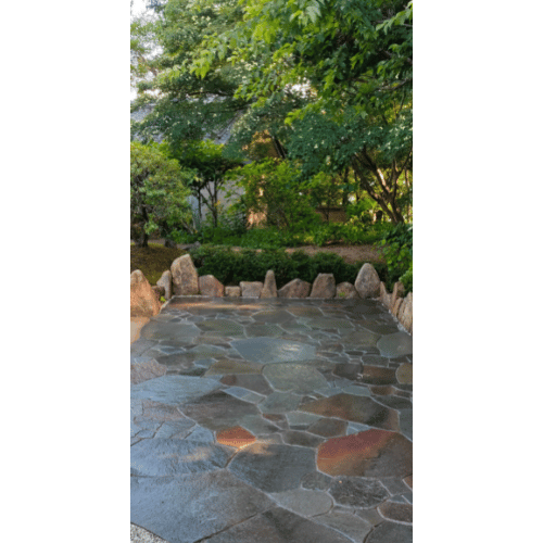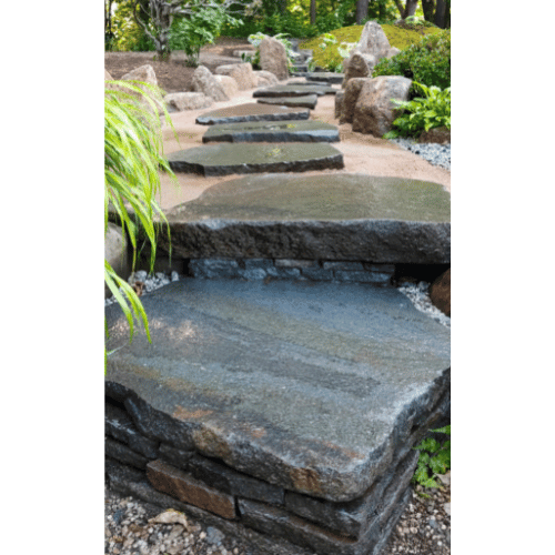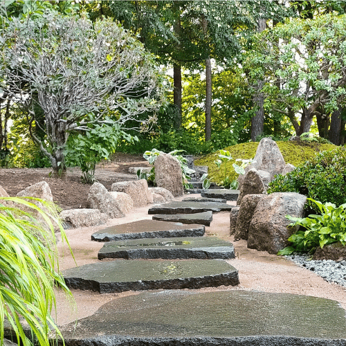 厚みのある鉄平石の飛石